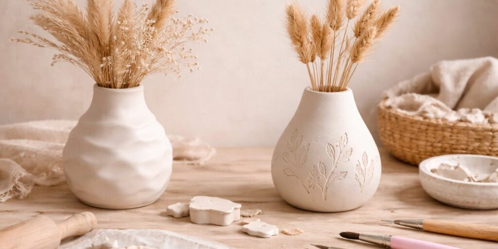 Ces vases faits main deviennent de véritables pièces uniques. Ils mettent en valeur des compositions de fleurs séchées tout en restant simples. C’est une activité créative accessible qui permet de renouveler sa décoration sans se ruiner. Une belle façon d’allier nature et artisanat.