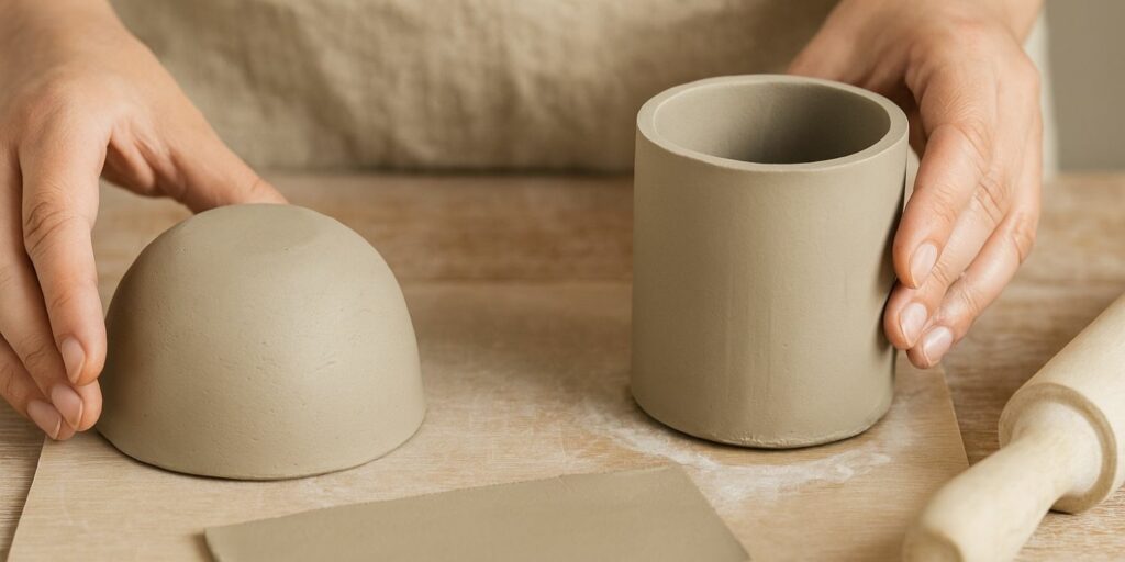 Si vous préférez une forme arrondie, vous pouvez utiliser un bol ou un ballon comme support. Étalez l’argile dessus en la pressant doucement, puis laissez sécher quelques heures avant de démouler. Cette méthode permet d’obtenir une courbe régulière sans moule professionnel.