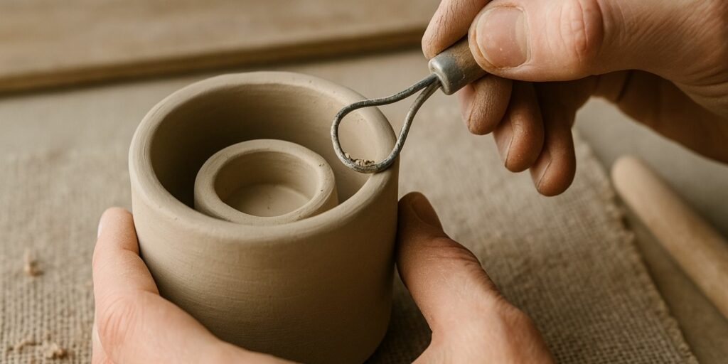 Travaillez en douceur pour ne pas déformer l’objet. Une argile trop humide devient molle et peut s’affaisser. Il vaut mieux lisser en plusieurs passes légères, en laissant sécher légèrement entre chaque intervention.