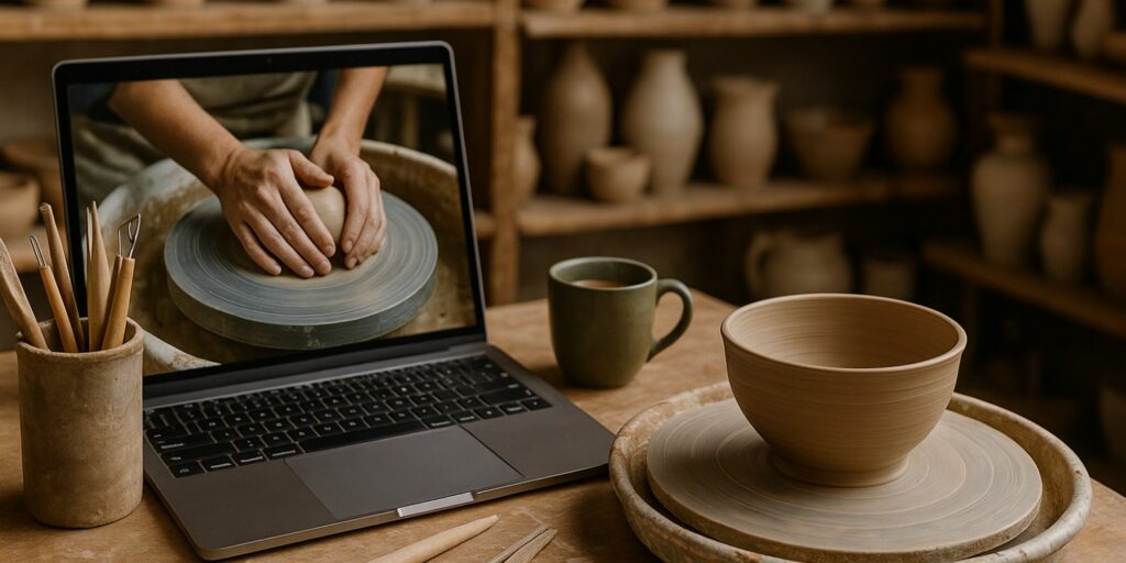 Les tutoriels pratiques sont parmi les contenus les plus consultés sur Clay Makers Academy. Ils couvrent toutes les étapes fondamentales de la poterie, de manière claire et détaillée : centrage de la terre, façonnage des formes, pose des anses, application d’engobes, émaillage, et enfin cuisson.