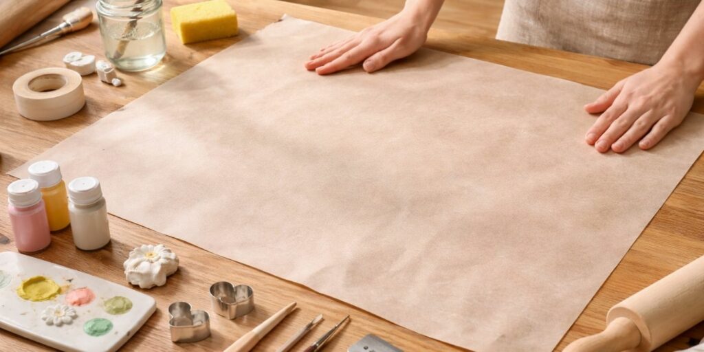 Avant de manipuler l’argile, prenez le temps de protéger votre surface de travail. Recouvrez la table avec une nappe en plastique, du papier sulfurisé ou un vieux journal. Cette étape évite les taches et facilite le nettoyage. Vous travaillerez ainsi dans de meilleures conditions.