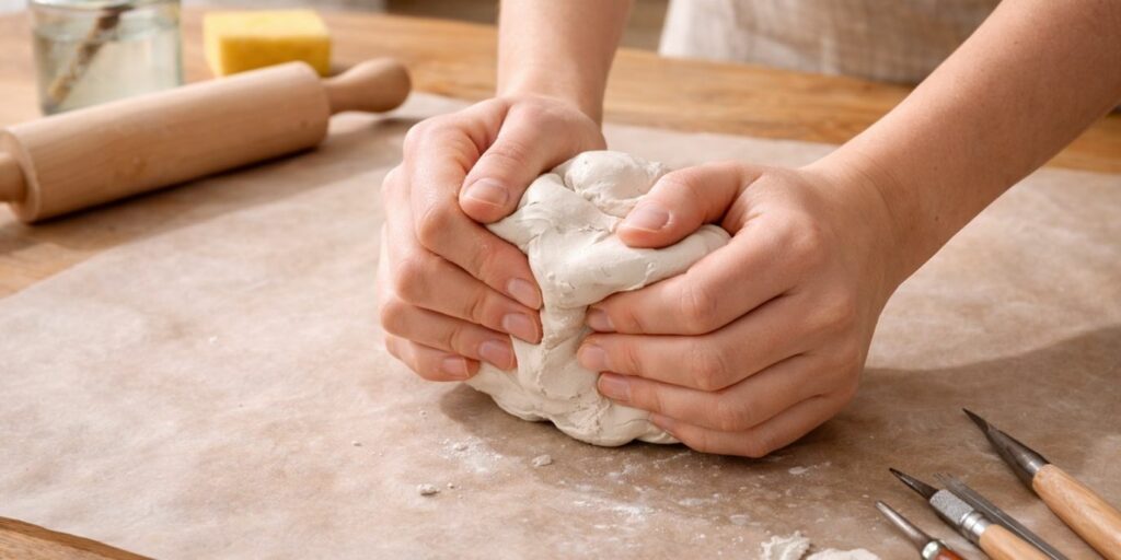 Prenez votre temps lors de cette étape. Un pétrissage insuffisant peut entraîner des fissures pendant le séchage. En travaillant soigneusement la matière, vous posez les bases d’une création durable. C’est un geste simple mais déterminant.