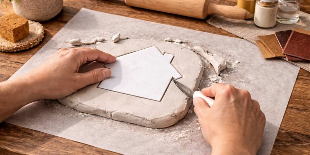 Si vous souhaitez une forme parfaitement symétrique, tracez d’abord les contours au crayon. Vous pouvez aussi utiliser un gabarit en papier. Posez-le sur l’argile et découpez en suivant les lignes. Cette méthode garantit un résultat plus régulier. Elle est idéale pour les débutants.