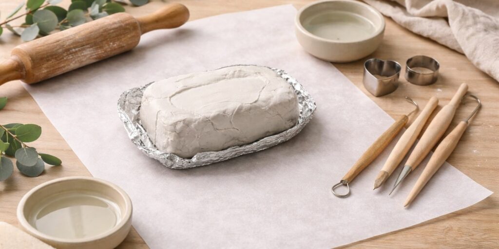 Avant de manipuler l’argile, il est indispensable de protéger votre plan de travail. L’argile peut laisser des traces ou coller sur certaines surfaces. Installez une feuille de papier cuisson, un tapis en silicone ou une plaque en plastique. Cette précaution vous évitera bien des désagréments.