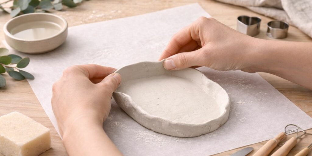 Le choix de l’argile est très important pour obtenir un beau résultat. Optez pour une argile de qualité, souple et facile à travailler. Vérifiez qu’elle ne soit pas trop sèche au moment de l’utilisation. Une bonne texture facilite le modelage et limite les fissures. Cela garantit un vide-poche plus solide après séchage.