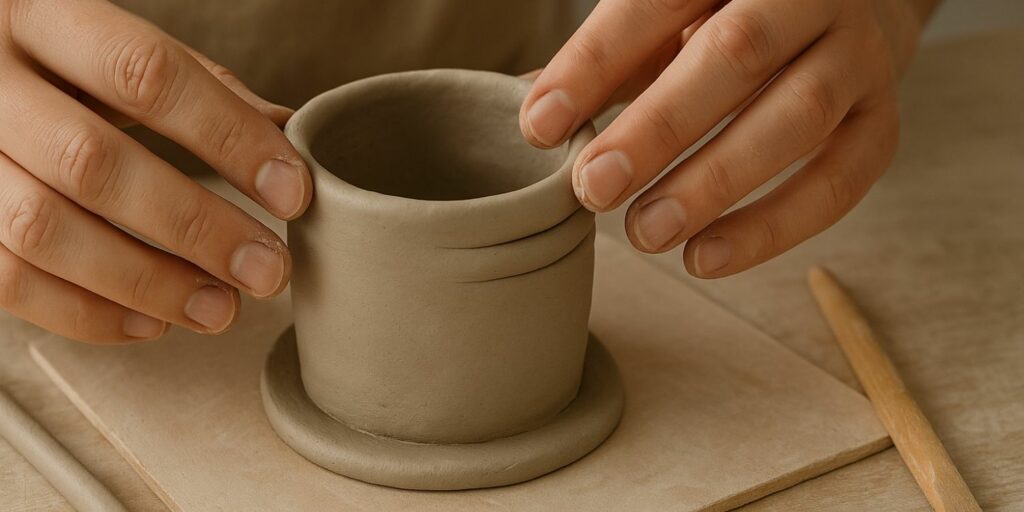 Une base trop fine risque de se fissurer au séchage ou de ne pas supporter le poids des parois. Une épaisseur d’environ un centimètre est généralement recommandée pour assurer robustesse et stabilité. Vous pouvez aussi renforcer les bords de la base avec un léger bourrelet d’argile pour améliorer sa solidité. Cette étape est simple mais essentielle pour la réussite de votre projet.