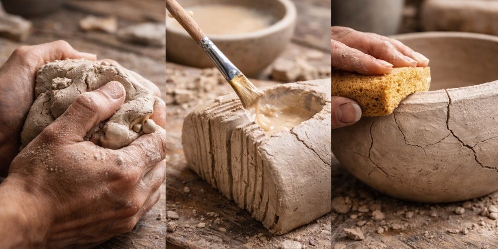 Les éléments ajoutés comme des anses, des bras ou des décorations en relief sont particulièrement sensibles. Si les jonctions ne sont pas solides, elles peuvent se fissurer en premier. Le séchage accentue ces fragilités, surtout si les parties ont des épaisseurs différentes.
